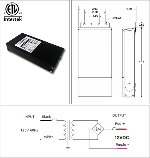 Dimensions (inch): H = 8.13, W = 3.93, D = 1.59
