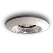 This innovative recessed downlight, with ribbed reflector and low profile trim ring is designed to accommodate a 12/24V low voltage MR16 bulb. This low voltage unit is supplied with an aluminum diecast housing. It mounts easily by means of side butterfly springs and relamps from the front by removing the face ring. The 1402 is ETL approved and conforms to UL standard 153. MAX. 35 watts.