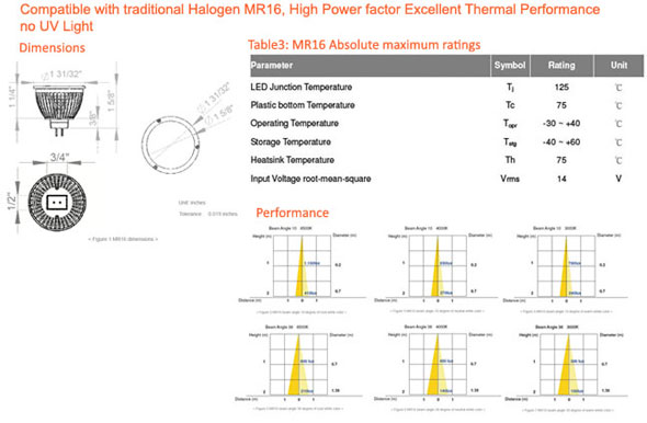 Our MR16 uses high brightness LED engine which gives a superb illuminance. It is ideal for the use in tracks, rails, and pendants in exhibit, architectual and residential applications. Furthermore, the multi-selection on various colors offers a great experience in decorative and moodlighting applications. The lamp features standard MR16 bi-pin, which offers an instant replacement in MR16 type fixtures. With a life of up to 50,000 hours, it can be used in hard-to-reach locations to prevent regular maintenance needs.
