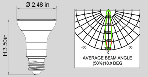 Product Details: Part#: PAR20 7W NC Wattage: 7W Beam Angle: 36 Degrees Lumens: 420lm, Warm White | 500lm, Cool White Efficacy: 60 CRI: 85 Color Temperature: 2700K, Warm White | 5000K, Cool White Base: E26/E27 Life: 25000h Dimmable: Yes UL Listed Yes